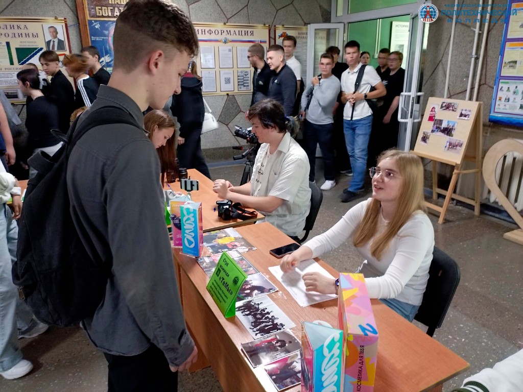 В холле первого этажа руководители подразделений принимали ребят в свои ряды. Подробно рассказывали, чем занимаются наши студенты во внеурочное время, как можно реализовать себя, развить личные навыки.