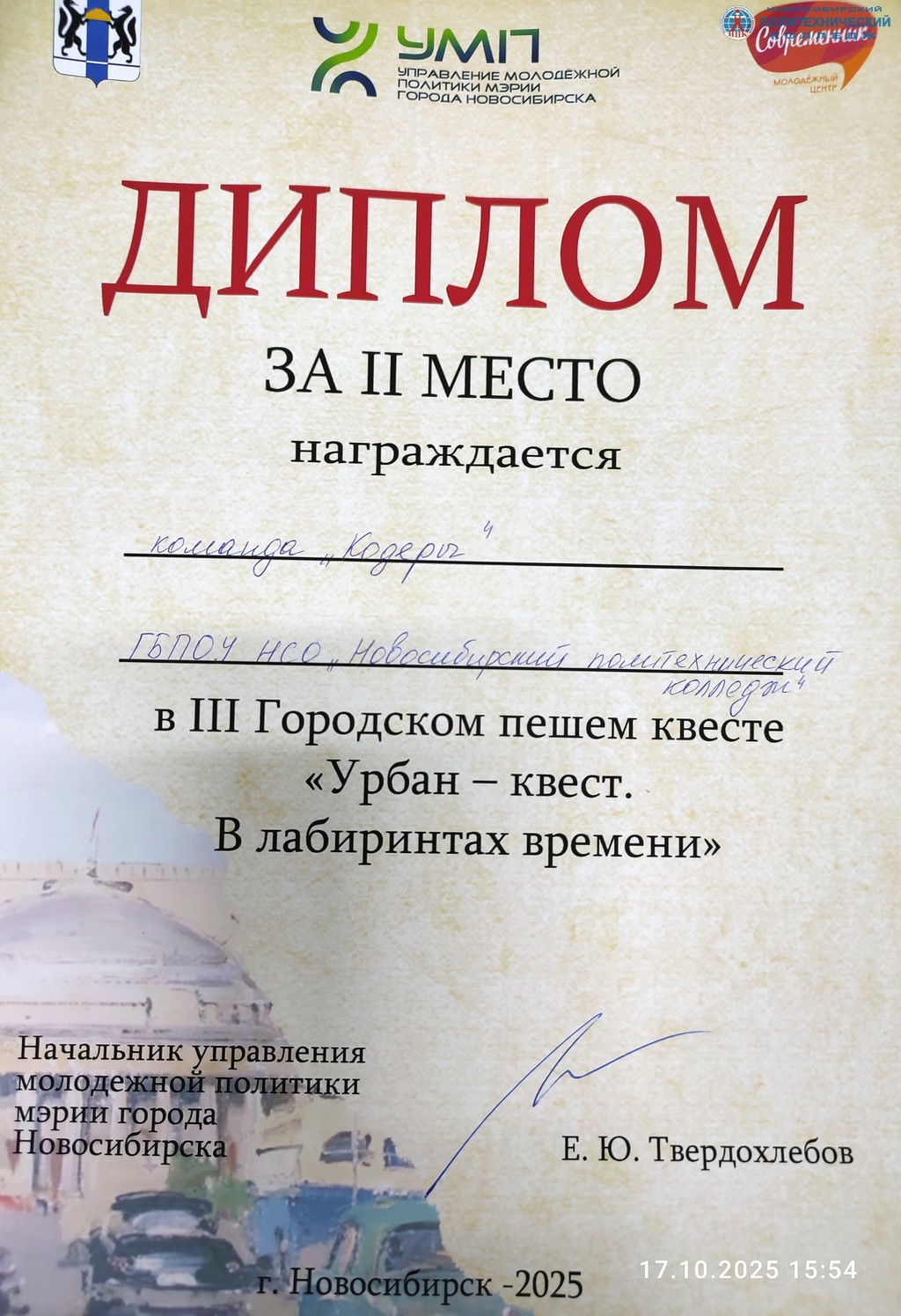 9 октября студенты нашего колледжа группы 124 ИСП вместе с куратором Мостовских Олесей Петровной приняли участие в III Городском пешем квесте «Урбан-квест. В лабиринтах времени».