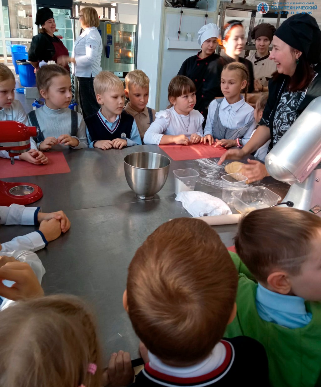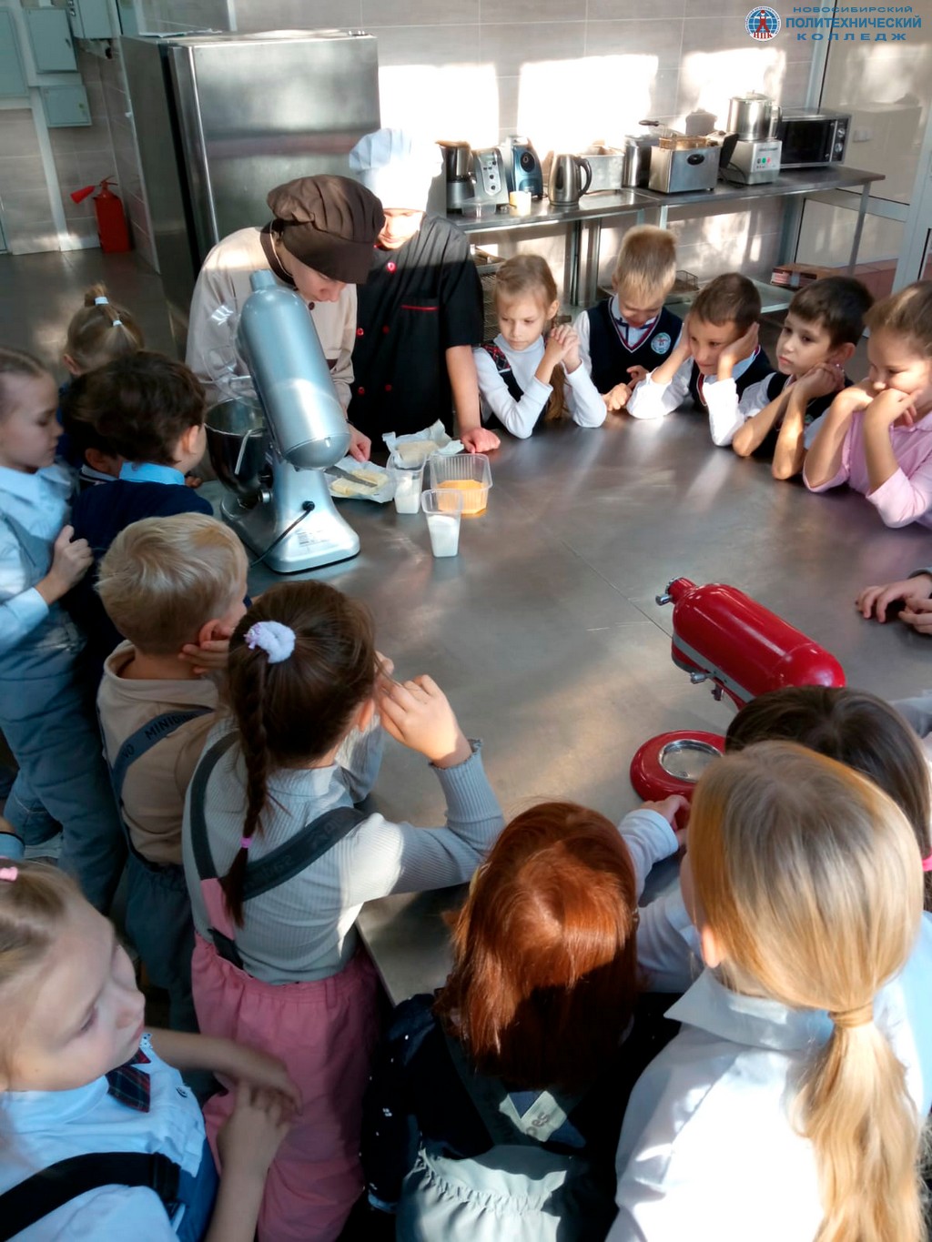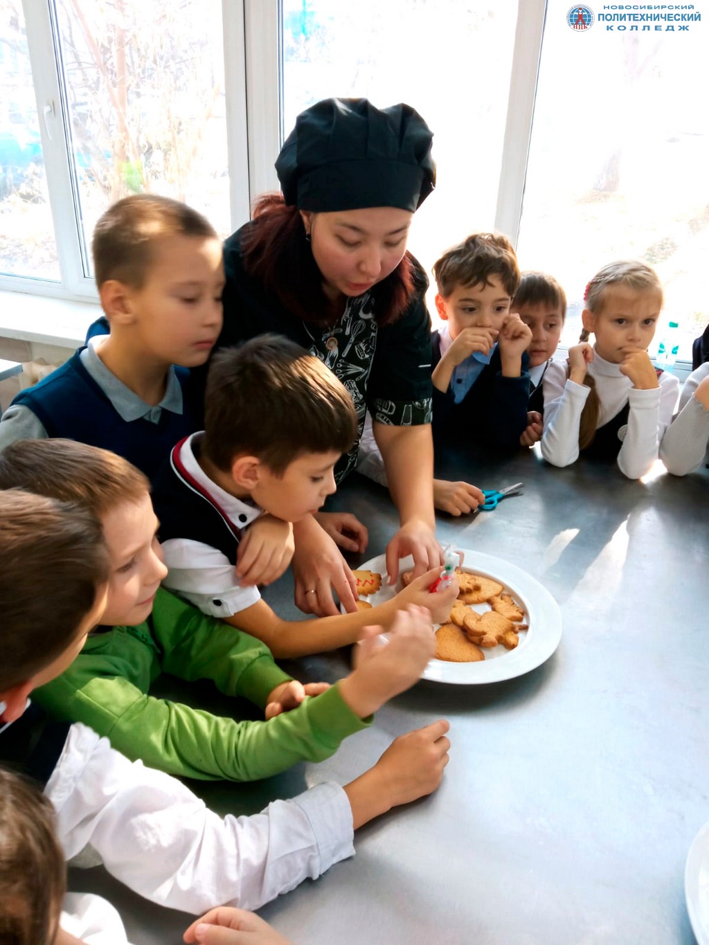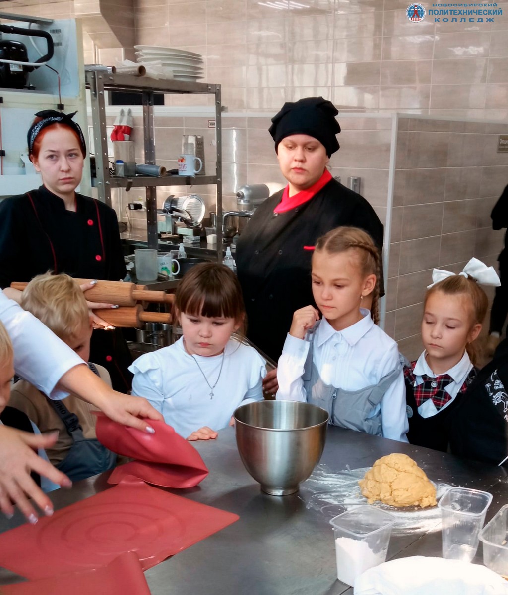 Ученики 61-й школы смогли познакомиться с нашим колледжем и узнать, какие профессии можно освоить здесь. Но самое главное — они попробовали себя в роли юных поваров! Под руководством опытных наставников группы 822 ПКД — Людмилы Ивановны Мироновой и Марии Васильевны Скирневской — малыши учились печь вкусное песочное печенье.