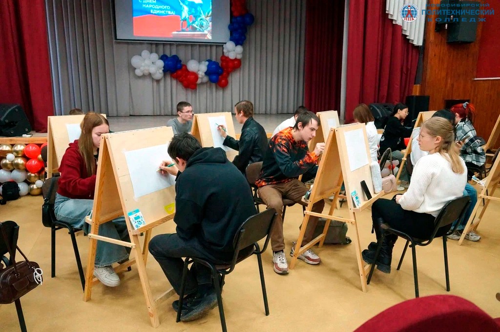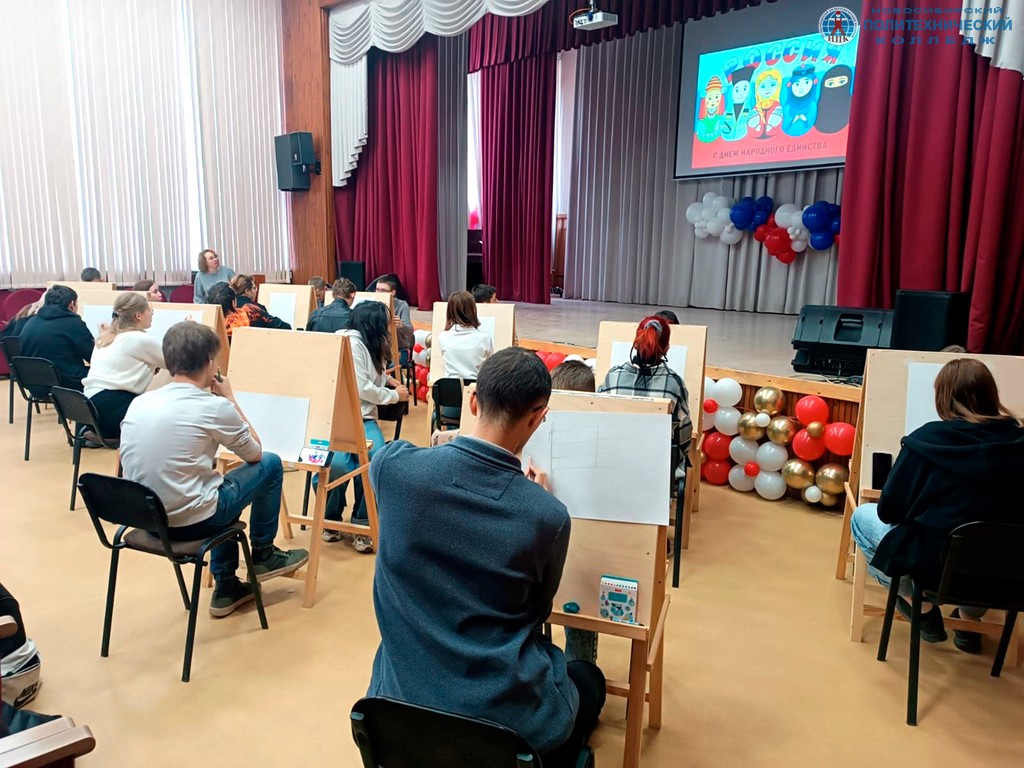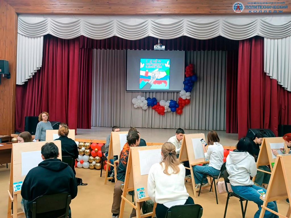 Темой урока рисования, в котором приняли участие студенты 1 курса, стала идея воссоединения народов России, как один из ключевых смыслов государственного праздника. Такая форма занятия помогла ребятам творчески осмыслить тему единства, дружбы и многообразия народов нашей страны.