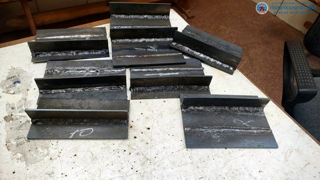 Обучающимся предлагалось выполнить сборку и сварку узла, состоящего из тавровых сварных соединений, расположенных в горизонтальном положении. В работе использовались пластины из легированной стали размером 2×40×200 мм и 1×100×200 мм, в соответствии с рабочим чертежом.