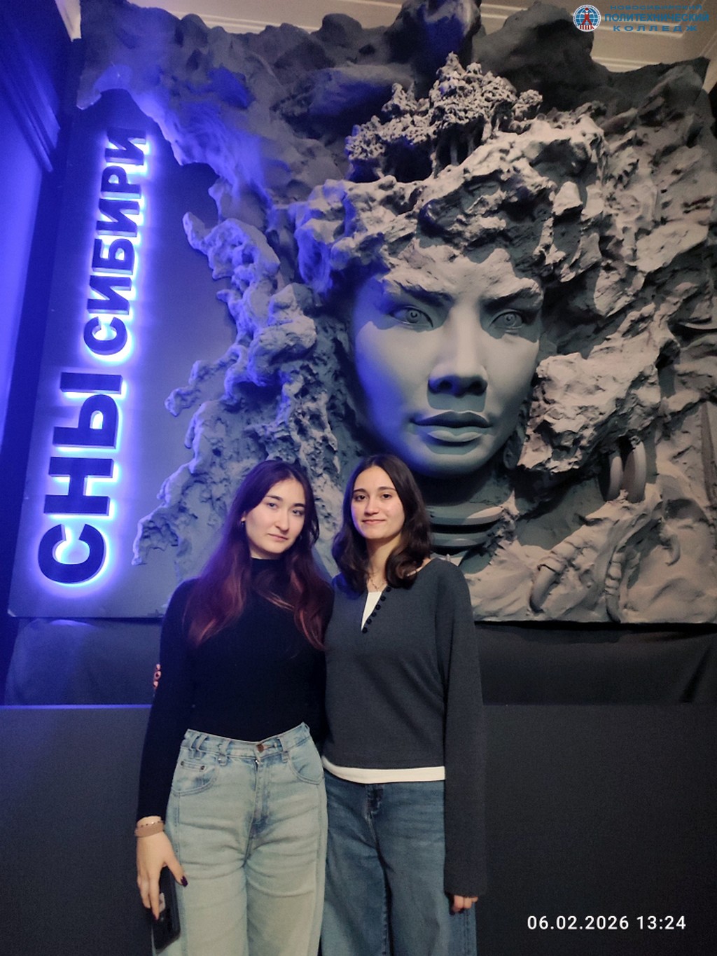 6 января группы наших студентов групп 124 ИСП и 024 ИСП, совместно с преподавателями Мостовских Олесей Петровной и Боцман Анной Дмитриевной посетили Новосибирский Государственный Художественный музей, где стартовал масштабный выставочный проект «Сны Сибири» - первый в России проект, объединивший историю, археологию, современное искусство и передовые экспозиционные технологии.