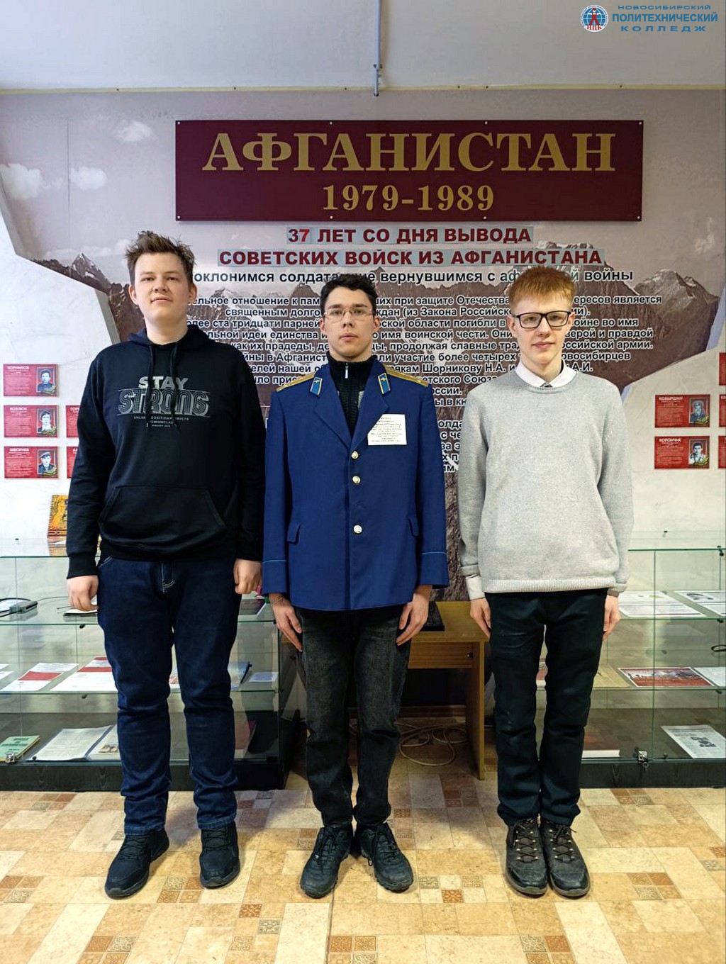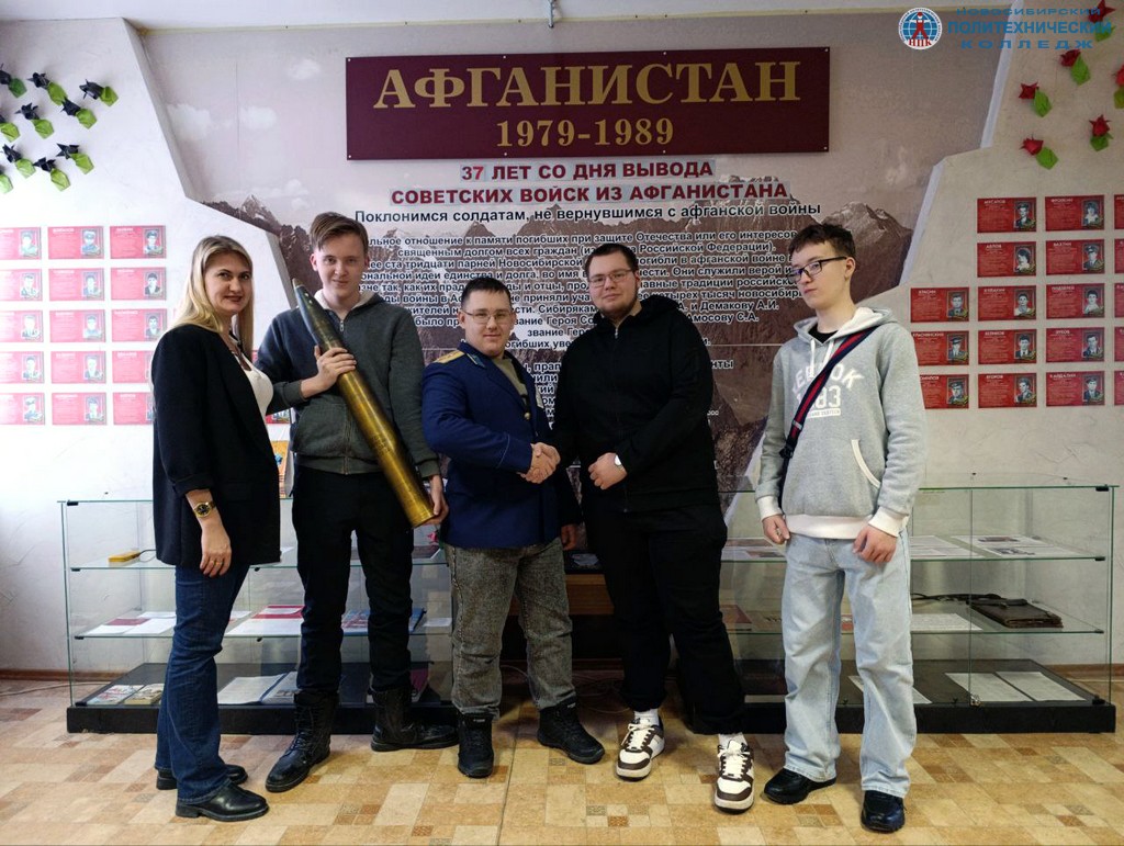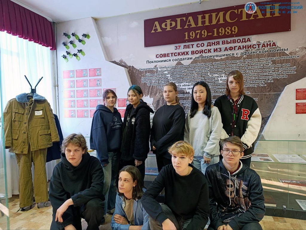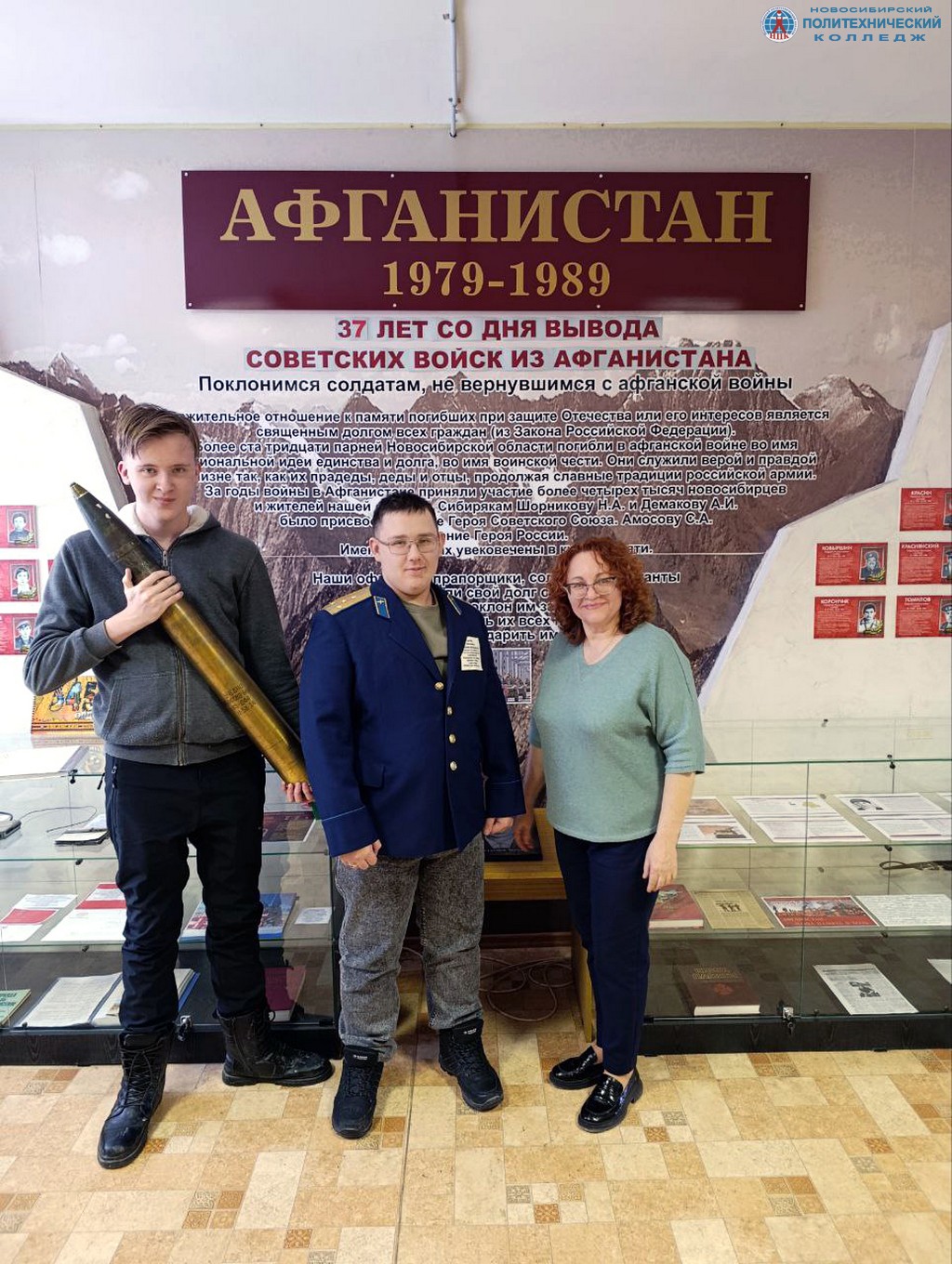 Во время экскурсий, проведенных для студентов групп 025 ИСП, 125 ИСП, 225 СА, 725 МО, 1025 МСМП педагогом-библиотекарем Голубцовой Натальей Михайловной, ребята познакомились с событиями тех лет, с биографией Негатина Юрия Леонидовича - выпускника ГПТУ-55, героически погибшего в начале Афганской войны, а также с документами и экспонатами, переданными в дар Музею нашими земляками - ветеранами-афганцами Советского района.