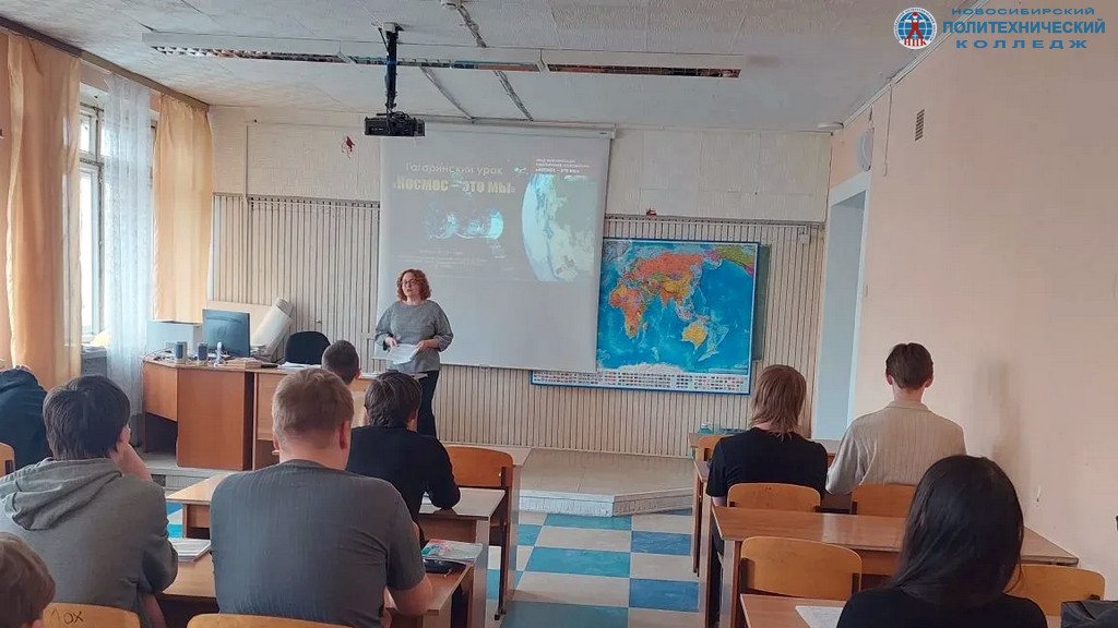 Ко Дню космонавтики и 65-летия первого полета человека в космос педагог - библиотекарь Голубцова Н.М. провела в колледже «Гагаринские уроки «Космос – это мы» для групп первокурсников 025 ИСП, 225 СА, 425 ЭО, 625 СВ, 825 ПКД.