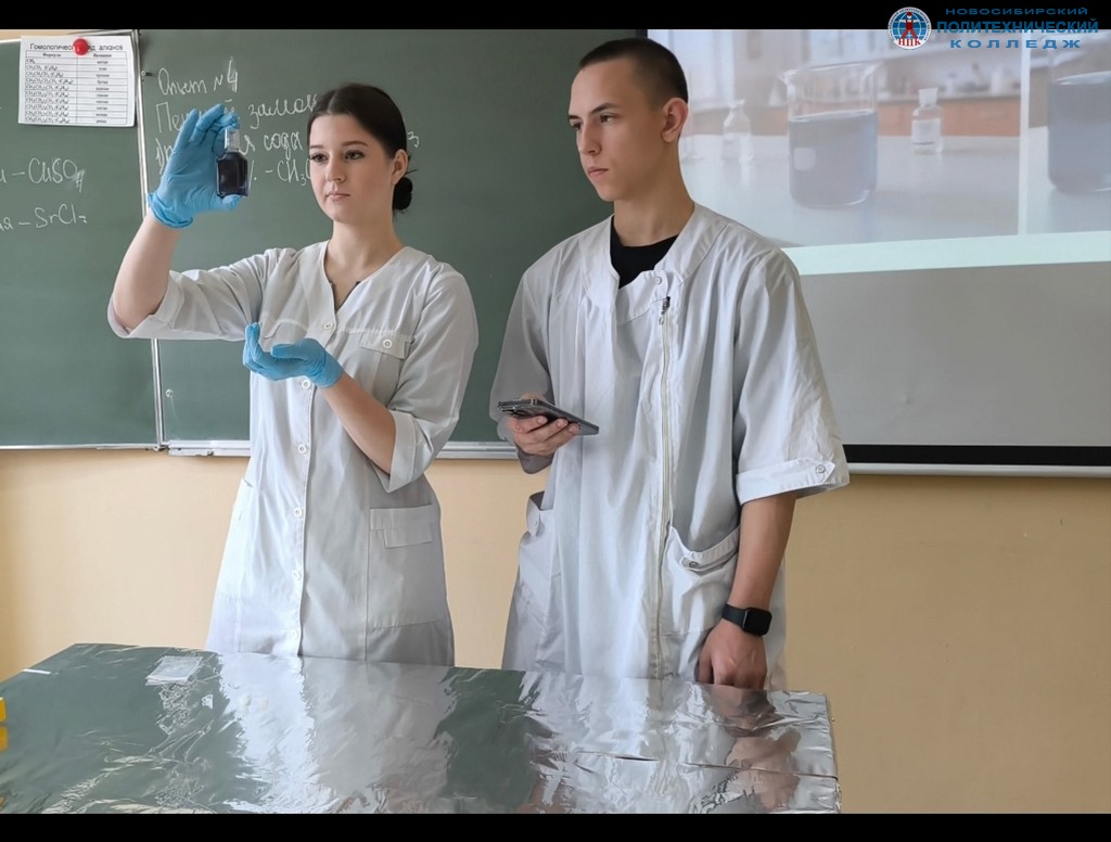 21 апреля в рамках недели ПЦК «Общеобразовательных дисциплин» проходило открытое мероприятие на тему: демонстрация экспериментов «Химическая лаборатория» под руководством педагога Юдиной Татьяны Викторовны при участии заместителя руководителя по УМР Васильевой Анастасии Витальевны.