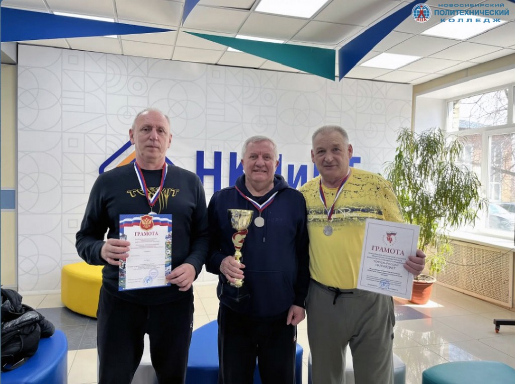 Новосибирский политехнический колледж достойно представила наша команда: директор Виктор Викторович Эллерт, мастер производственного обучения Александр Иванович Рева и преподаватель физвоспитания Геннадий Владимирович Ясько. Они показали отличные результаты по итогам всех соревнований, стали серебряными призёрами и заняли почётное 2 место!
