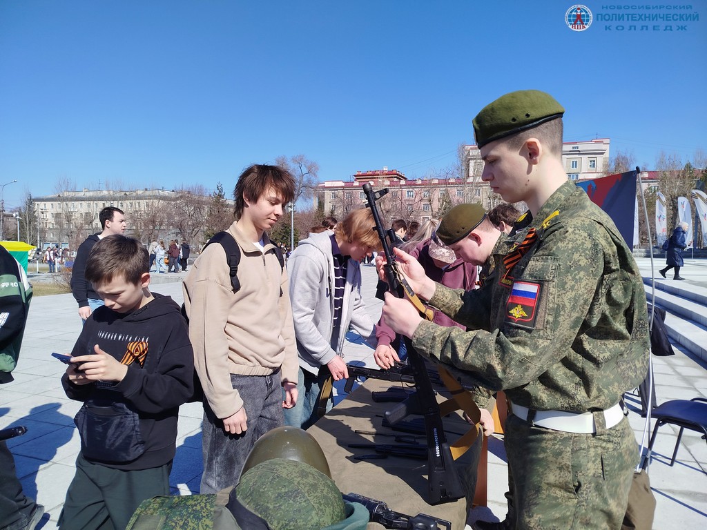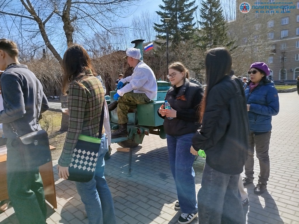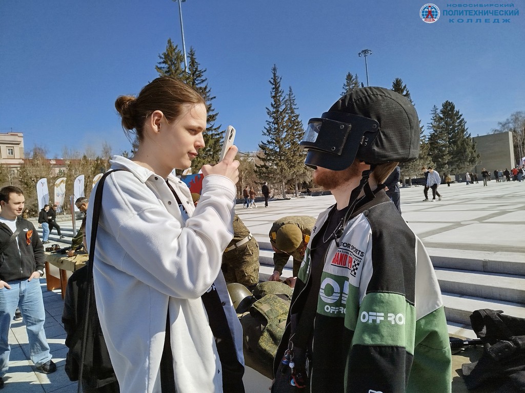 Ребята Новосибирского политехнического колледжа также присутствовали в этот день на Монументе Славы: участвовали в мастер-классах, стали свидетелями торжественной церемонии возложения цветов к мемориалу Вечного огня в память о воинах Великой Отечественной войны.