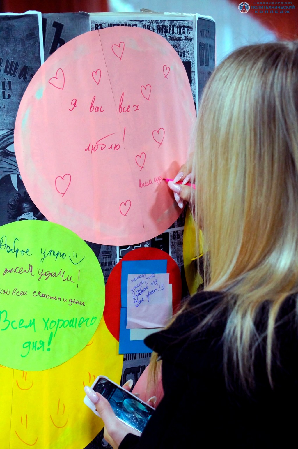Студентов и сотрудников колледжа встречали студенты группы 025 ИСП, творческая команда «ТеМы», подразделение «Звукооператоров», команда «Кадры». В колледже звучала приятная музыка, раздавались весёлые «мотивашки», работала локация «Vibe check», на которой писали пожелания для всех.