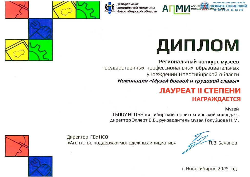 Поздравляем с отличным результатом администрацию колледжа и лично Голубцову Наталью Михайловну за качественный вклад в развитие нашего музея!