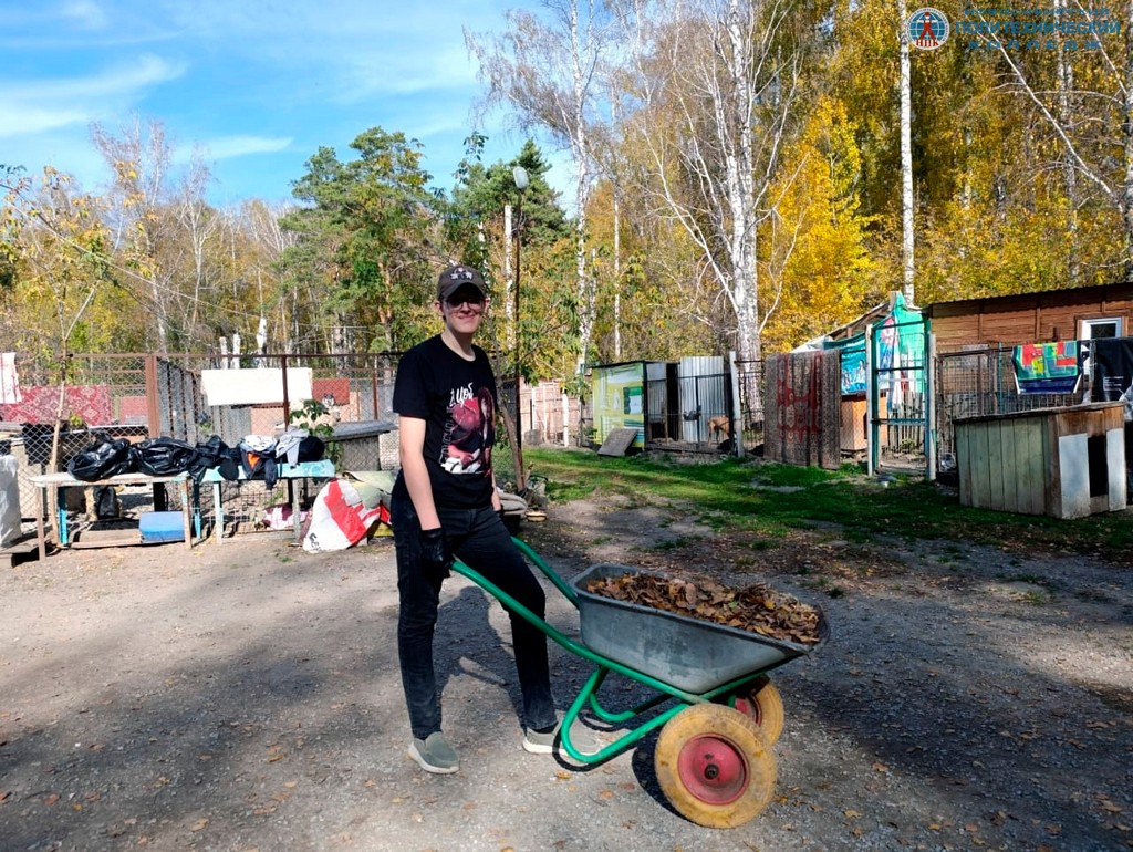 26 сентября наши неутомимые волонтеры совершили важную и очень полезную поездку в Приют для собак, расположенный в Академгородке. Осень в разгаре и работы у сотрудников приюта прибавилось – территория утопала в опавших листьях.