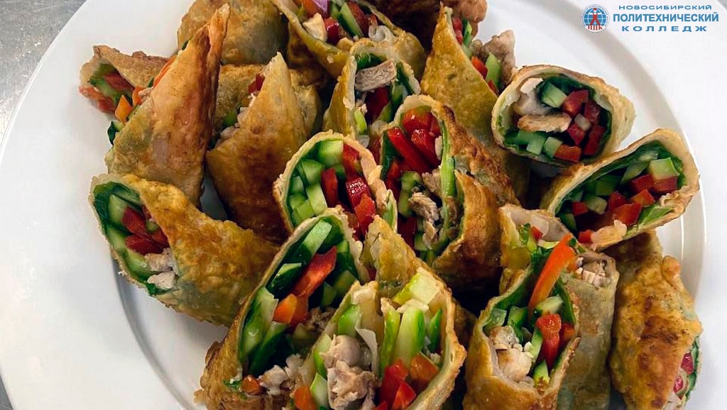 В меню были закрытые горячие бутерброды, канапе, бургеры, рулетики из баклажана, сырные шарики и горячие спринг-роллы.
